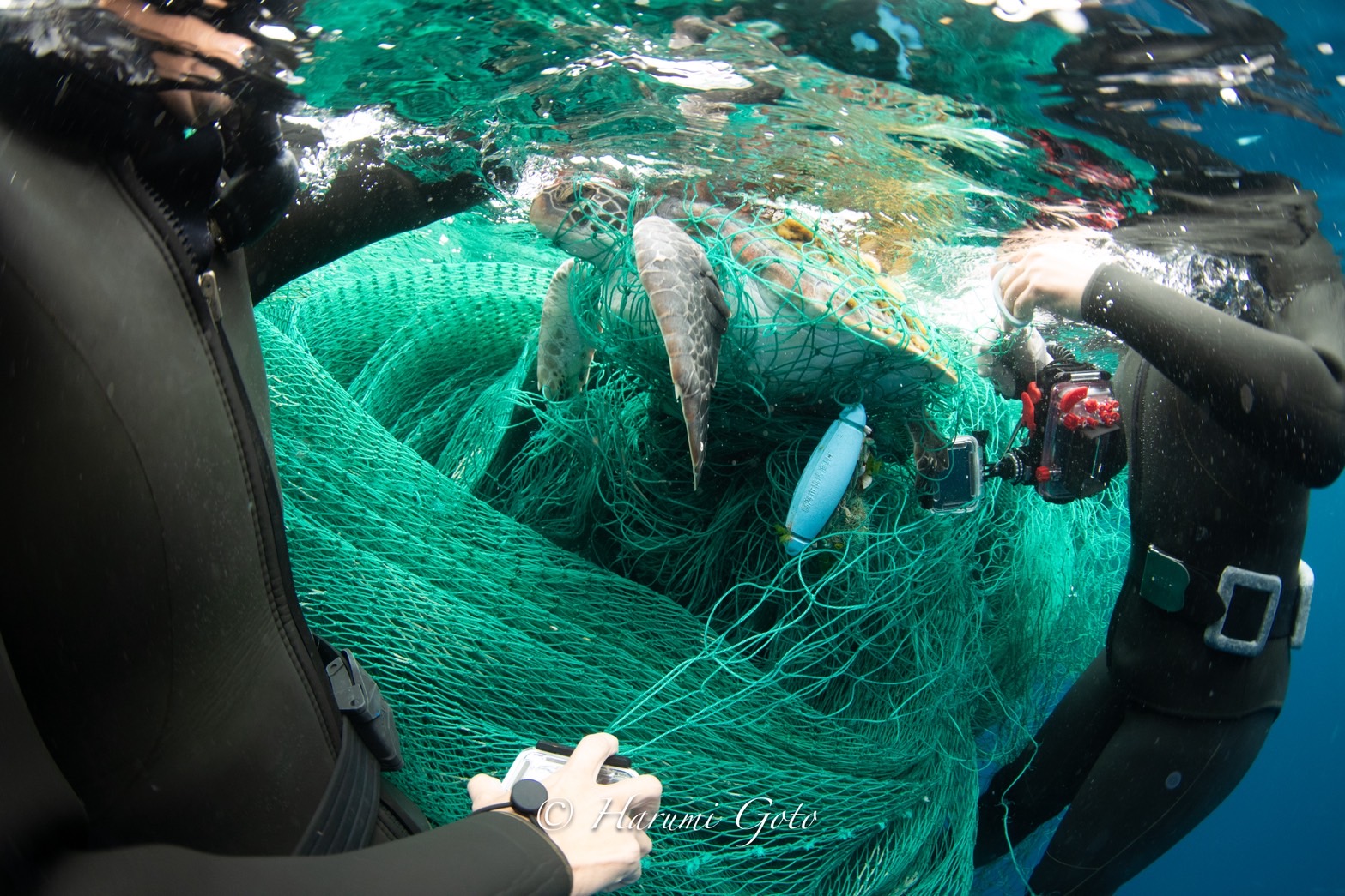 ん?魚網?カメがかかってる?
