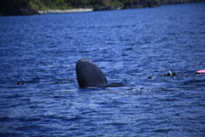 出港前にクジラ情報、東から向かうと、別に2頭、高速東へ!